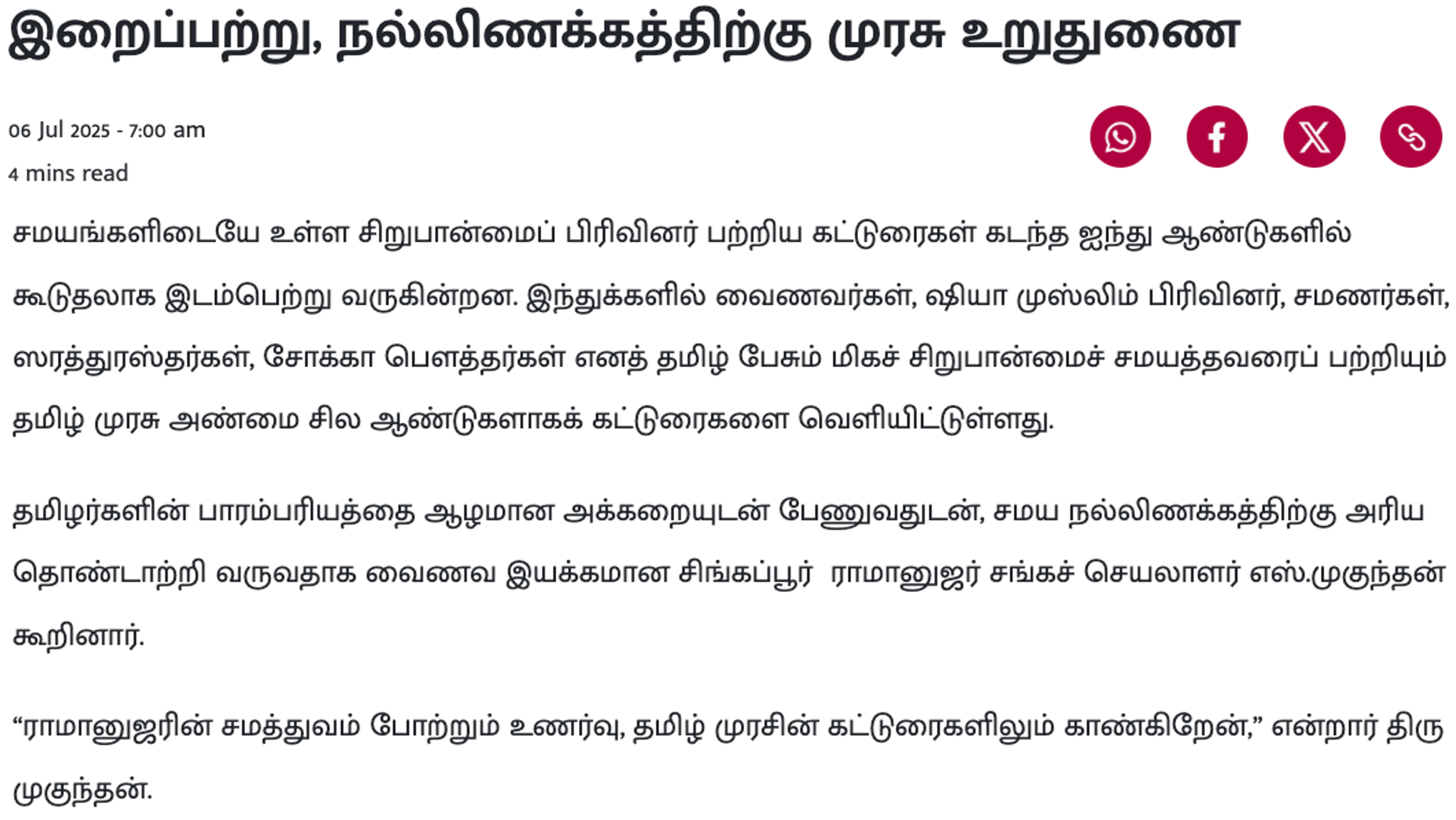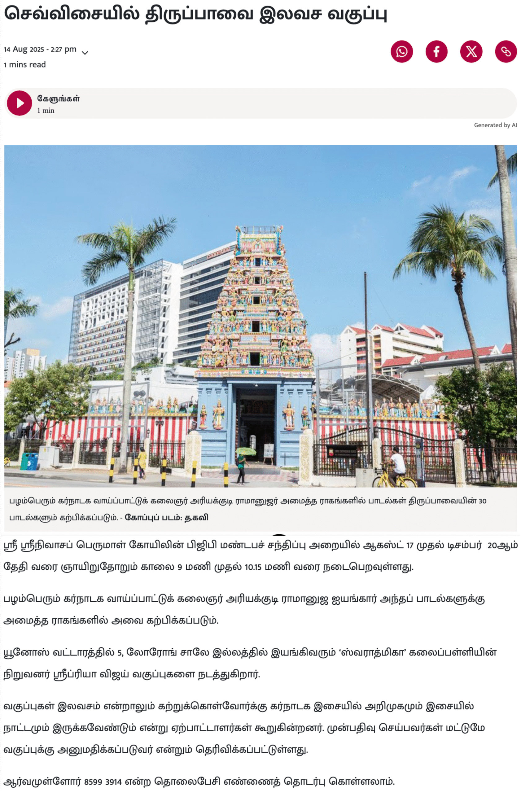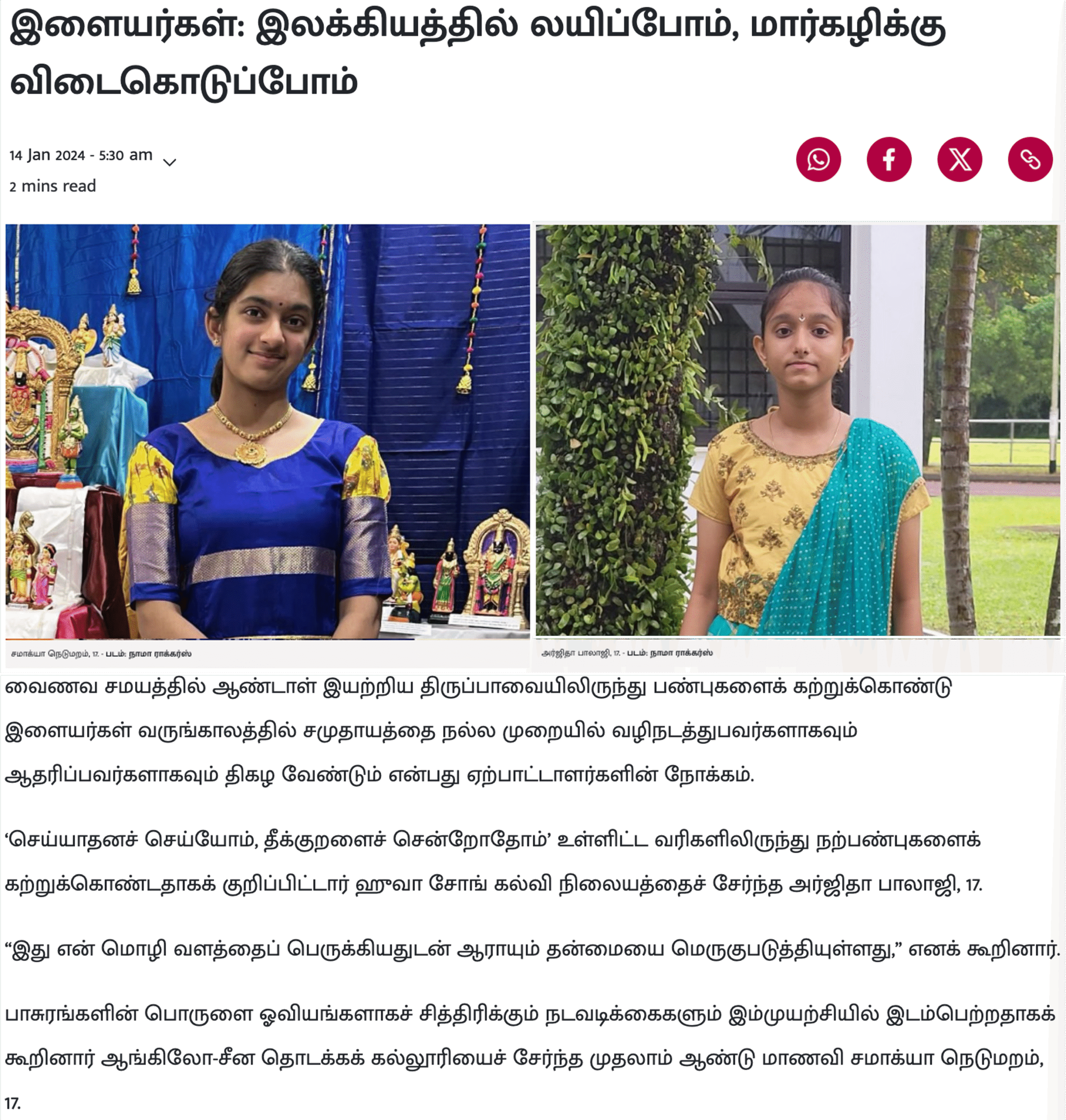 Featured on Tamil Murasu
