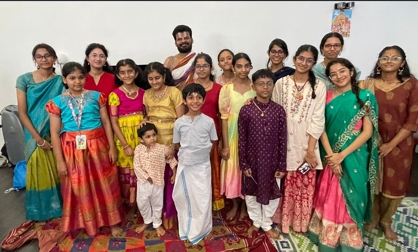 The day commenced on an uplifting note with a soulful rendition of Thondaradippodi Azhwar’s Thirumalai, melodiously set to tune by Smt. Sripriya Vijay and offered with deep devotion by the young Rockers. Their vibrant voices and bhakti-laden performance filled the air with divinity and set the tone for the rest of the day.