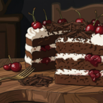 9. Assemble: Place the first layer on a serving plate. Spread a generous layer of whipped cream and scatter cherries over it. Repeat with remaining layers. Frost the top and sides with the remaining cream.