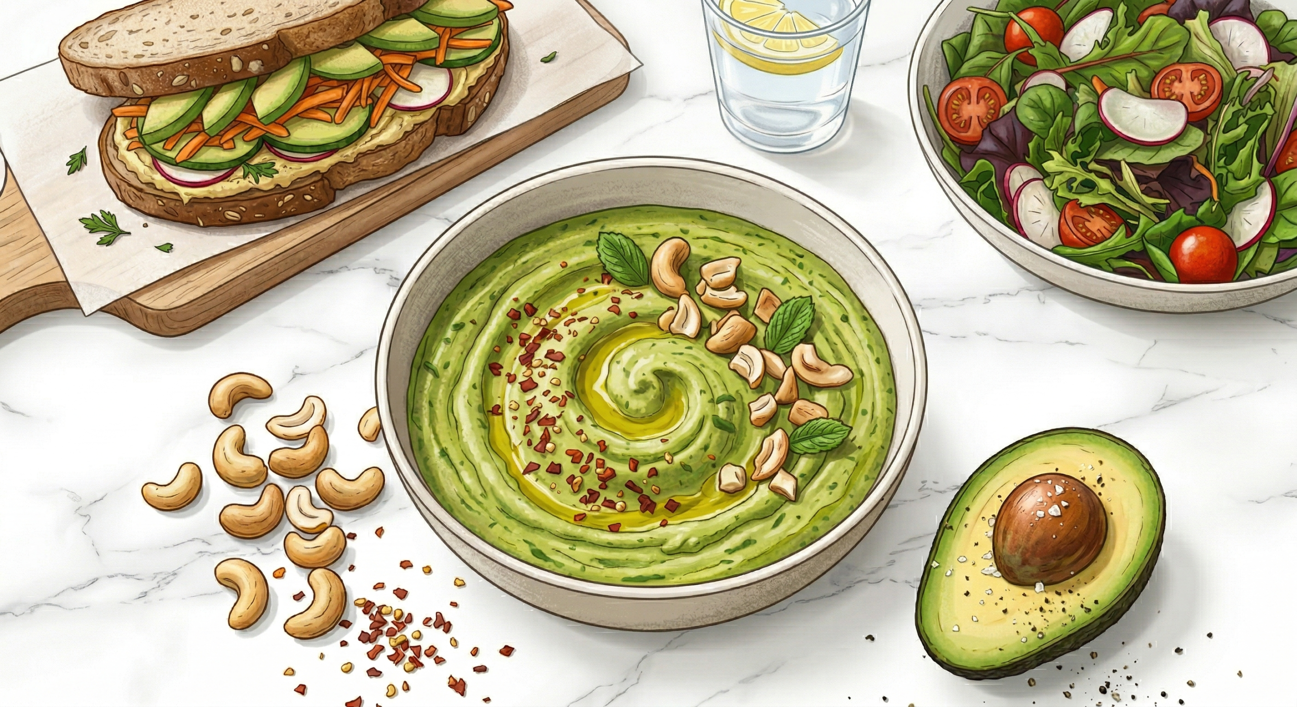 - Blend the sauce: Add the silken tofu, avocado, cashews, milk, sugar, chilli flakes and salt into a blender or mixie. Blend until completely smooth and creamy.